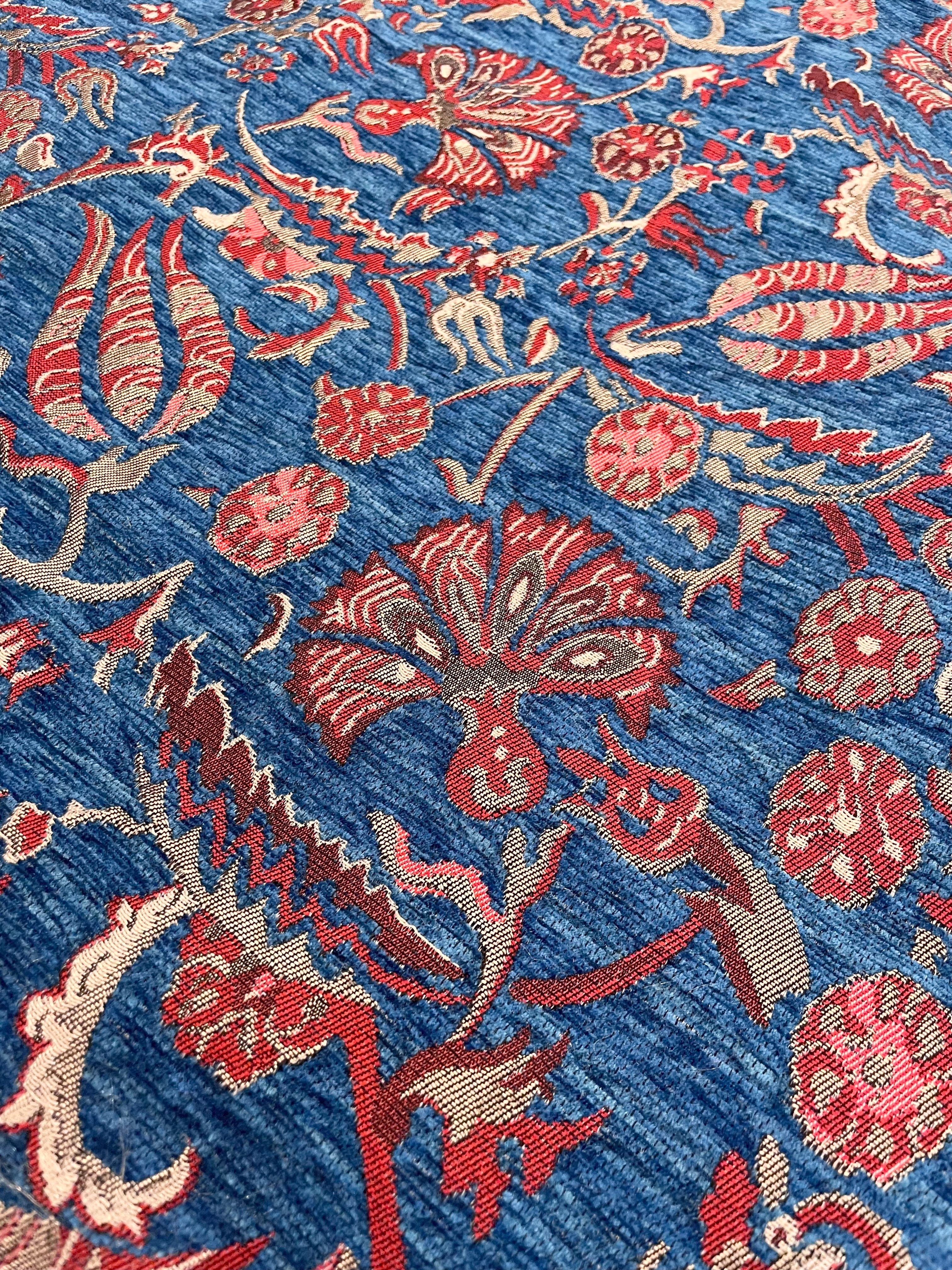 中東のシェニール生地 フラワー ブルー