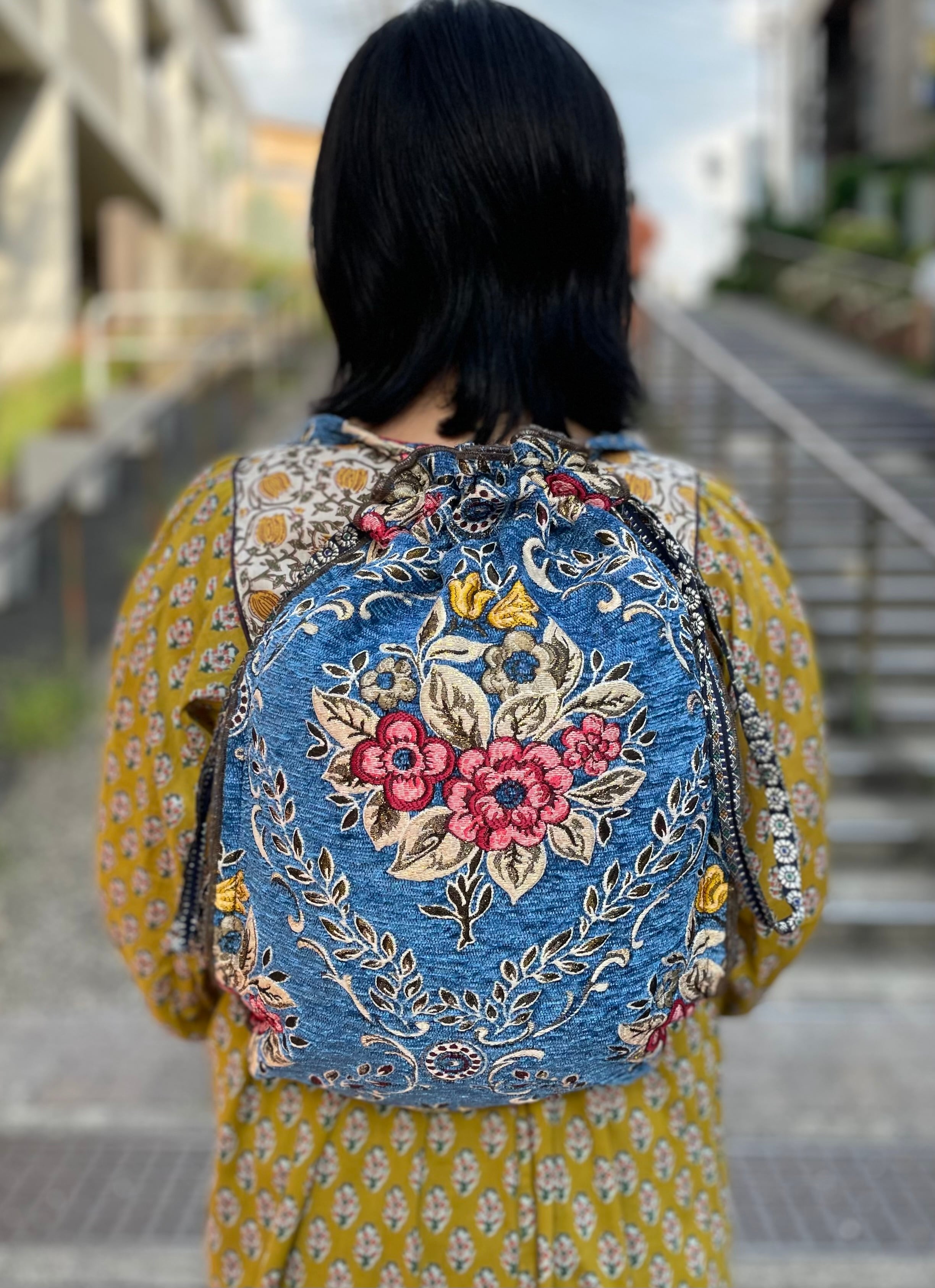 中東の生地を使ったナップザックです。丈夫な生地で使い心地が良いです。