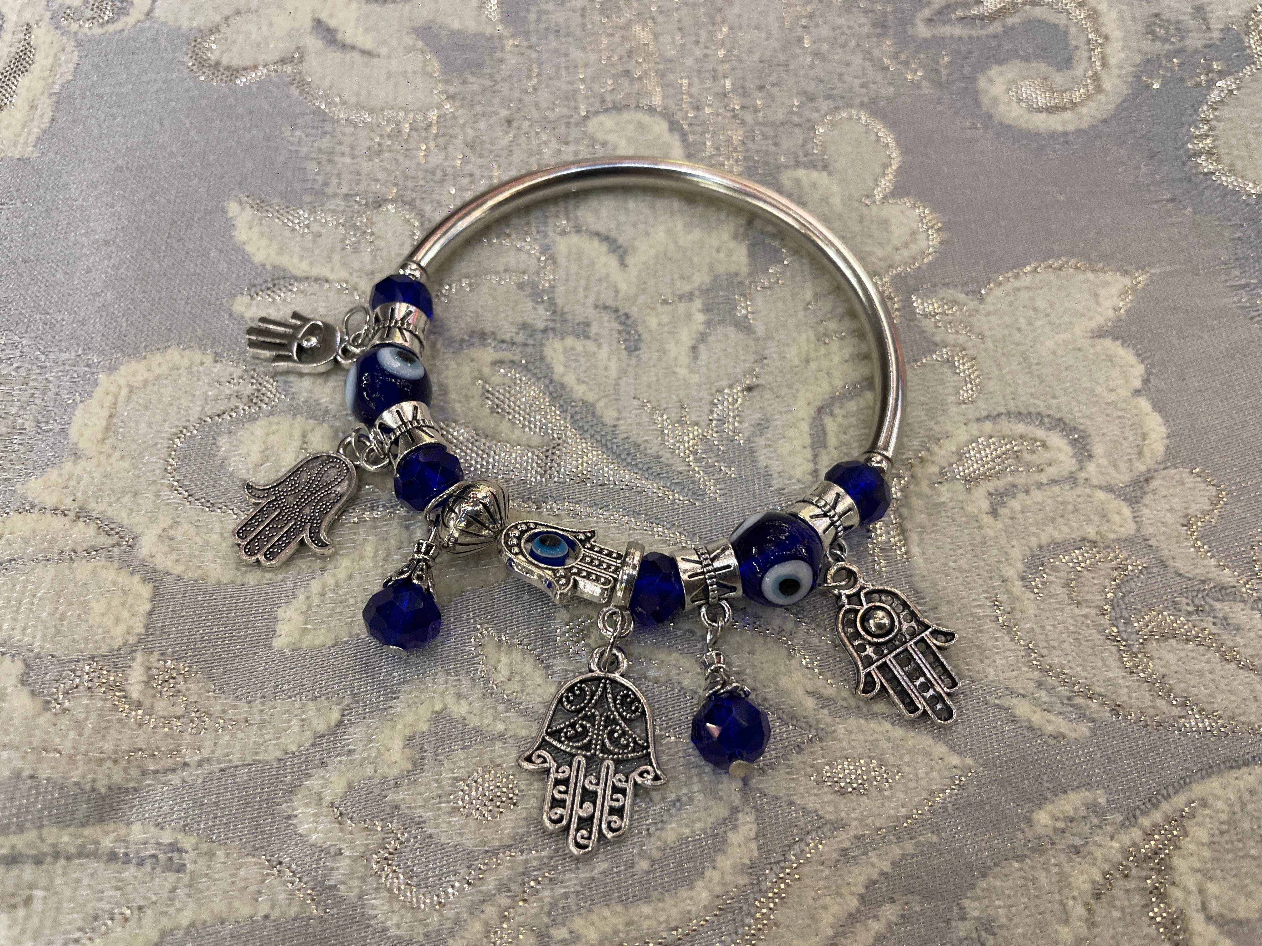 トルコの魔除けとして有名なお守りのナザールボンジュウのブレスレット。目玉がモチーフとなっていて、あらゆる厄災から身を守ってくれると云われています。