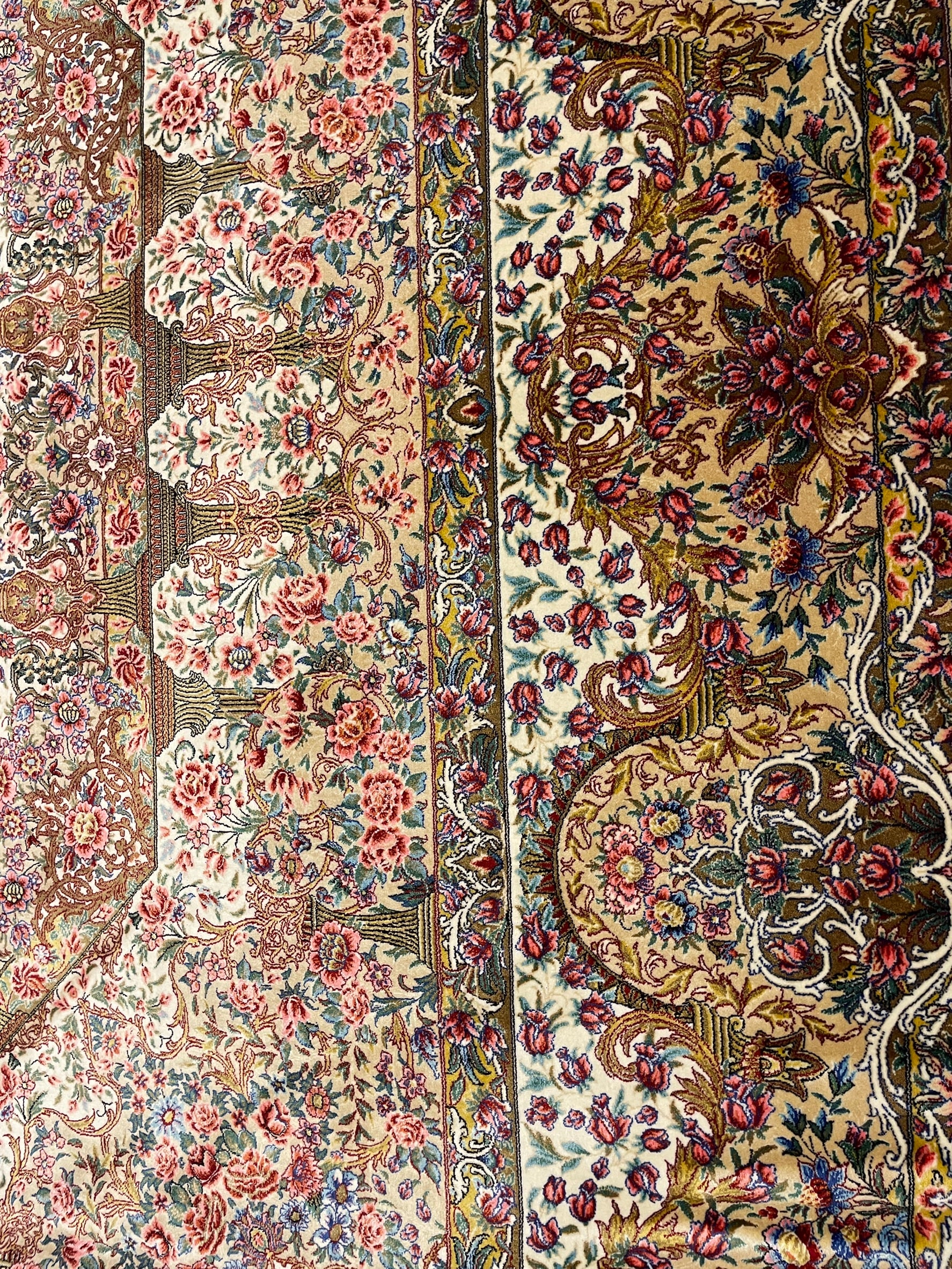ザクロ史上初入荷!バンブーシルク仕様の超高級絨毯です。この滑らかさ!光沢!