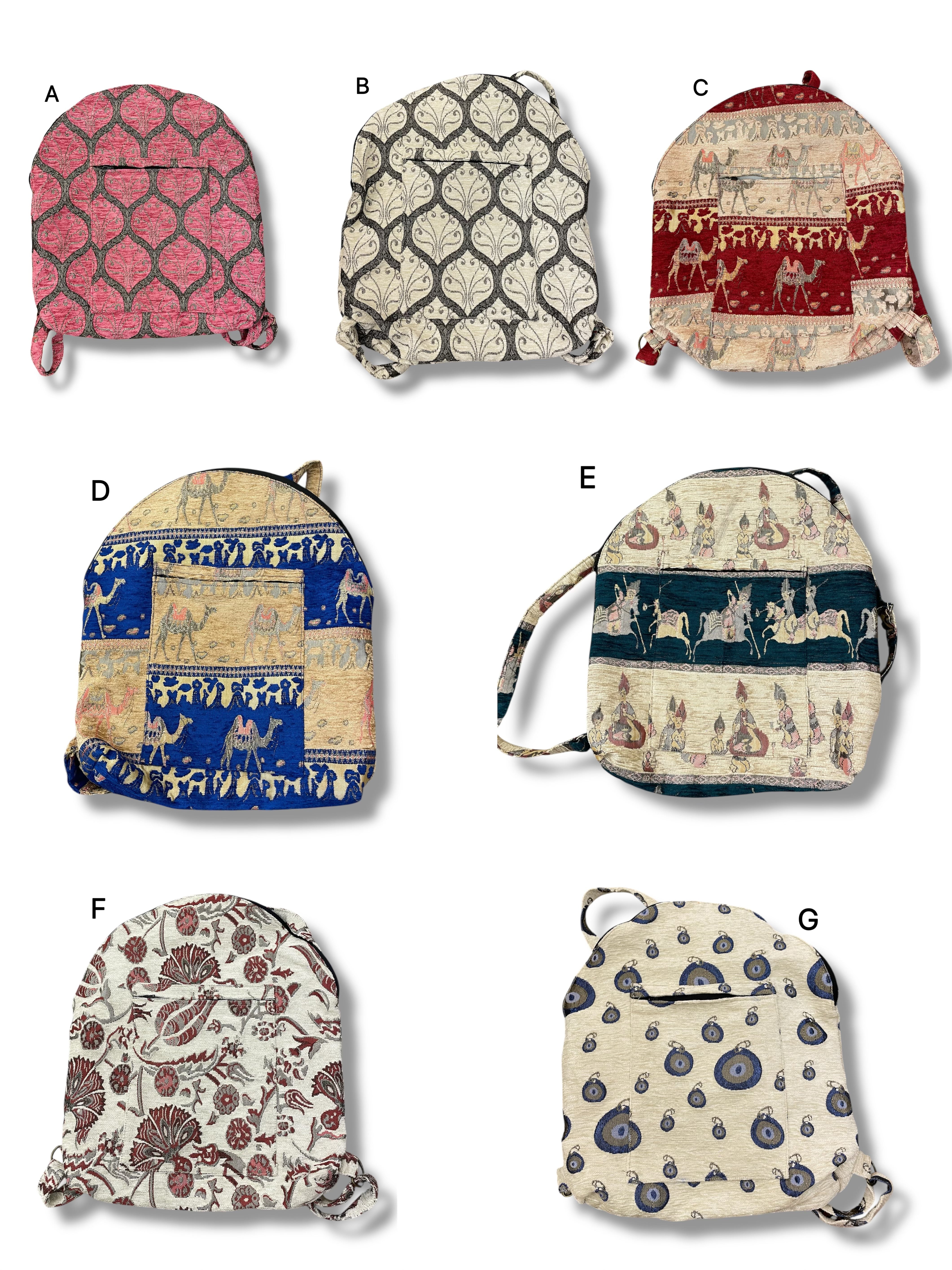 中東の生地を使ったリュックサックです。丈夫な生地で使い心地が良いです。