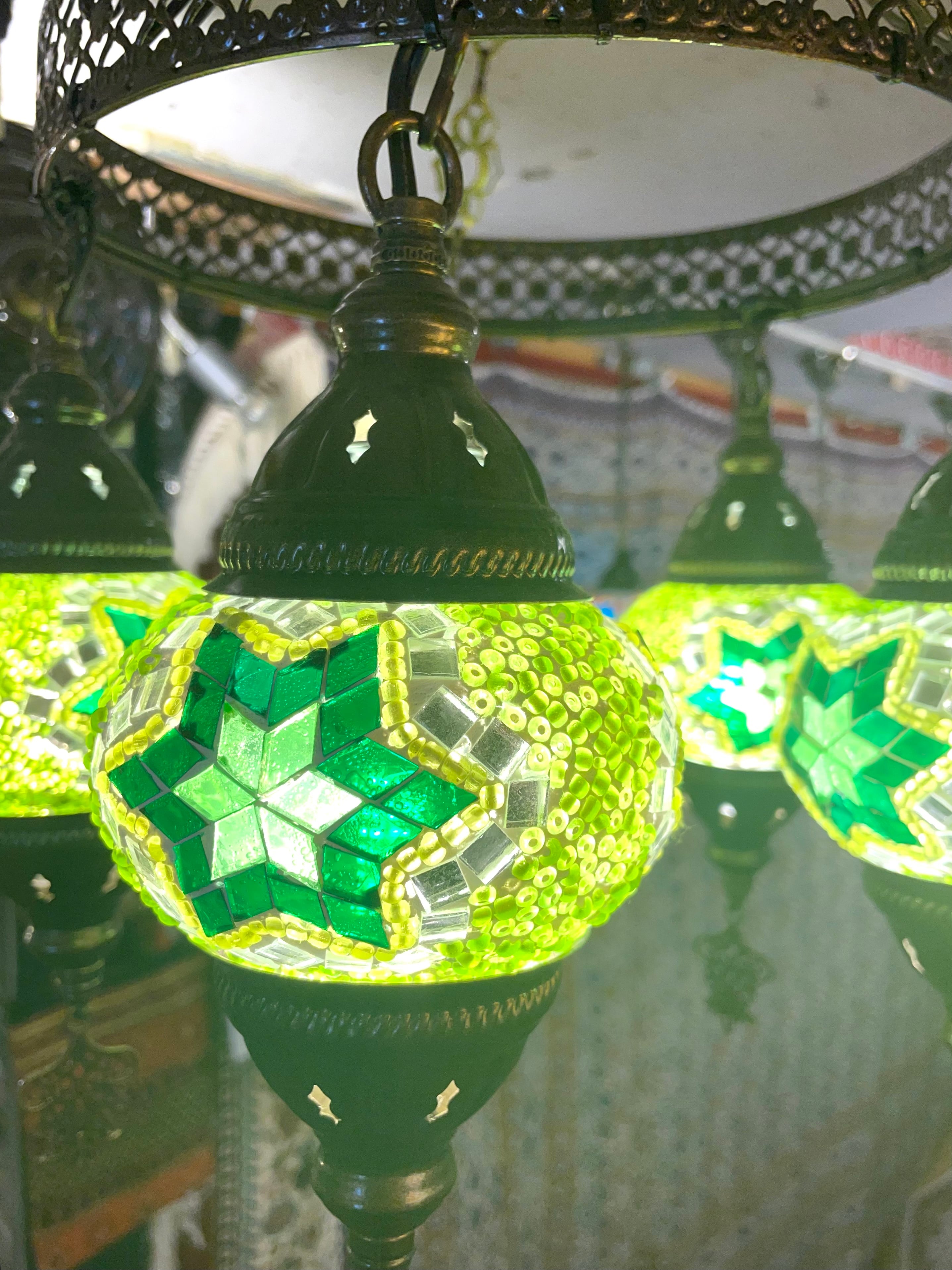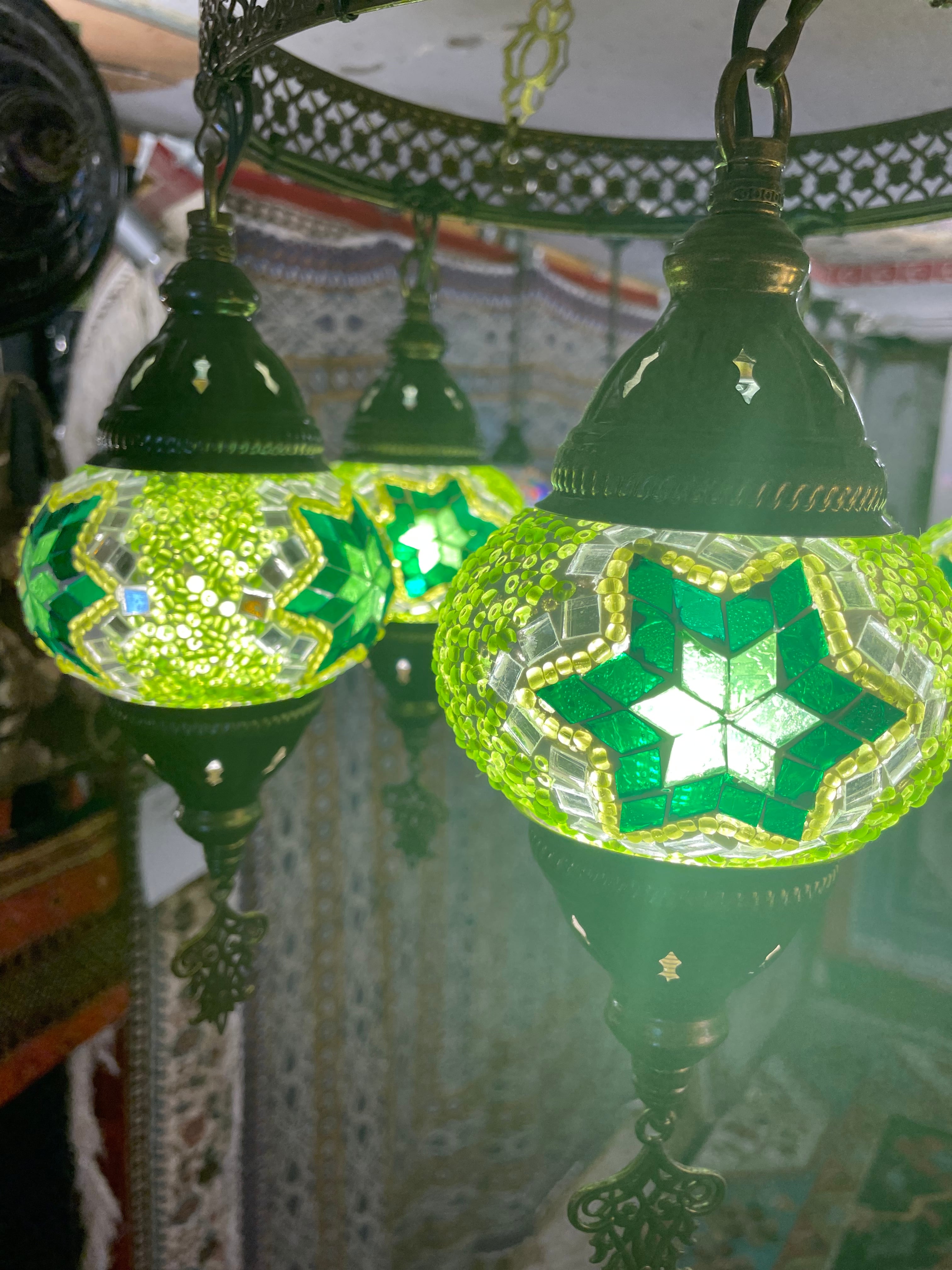 【LED電球付き】定番の5連トルコモザイクランプは華奢なシルエットでエキゾチック感満載!