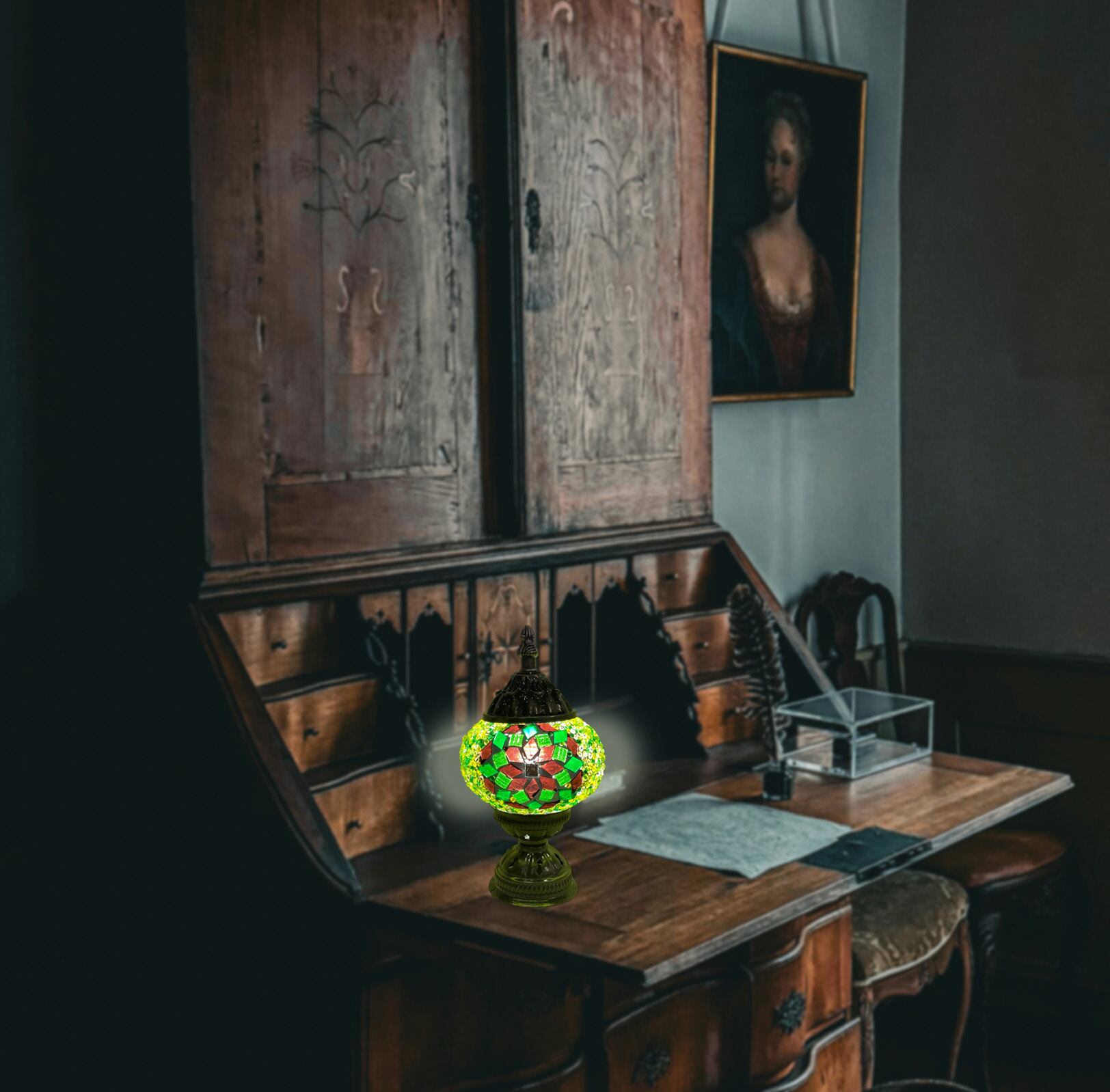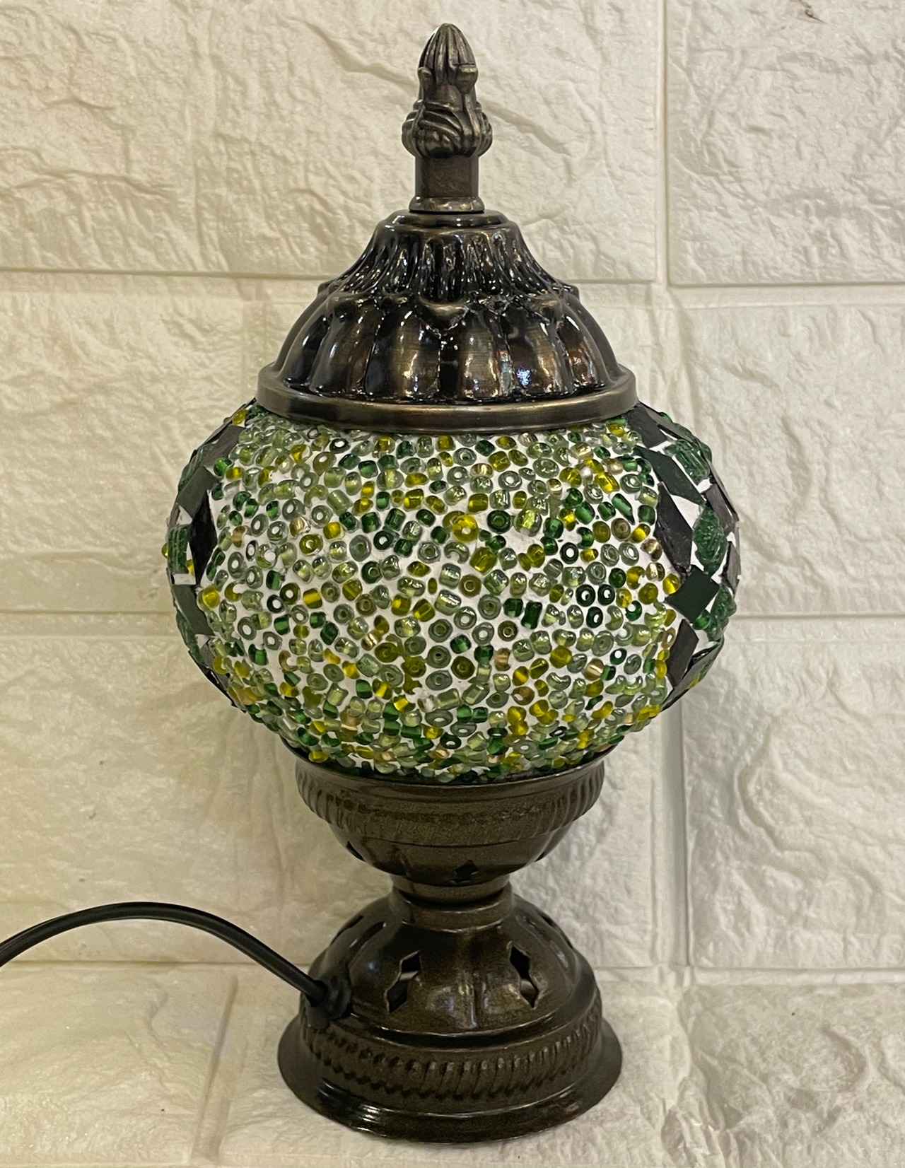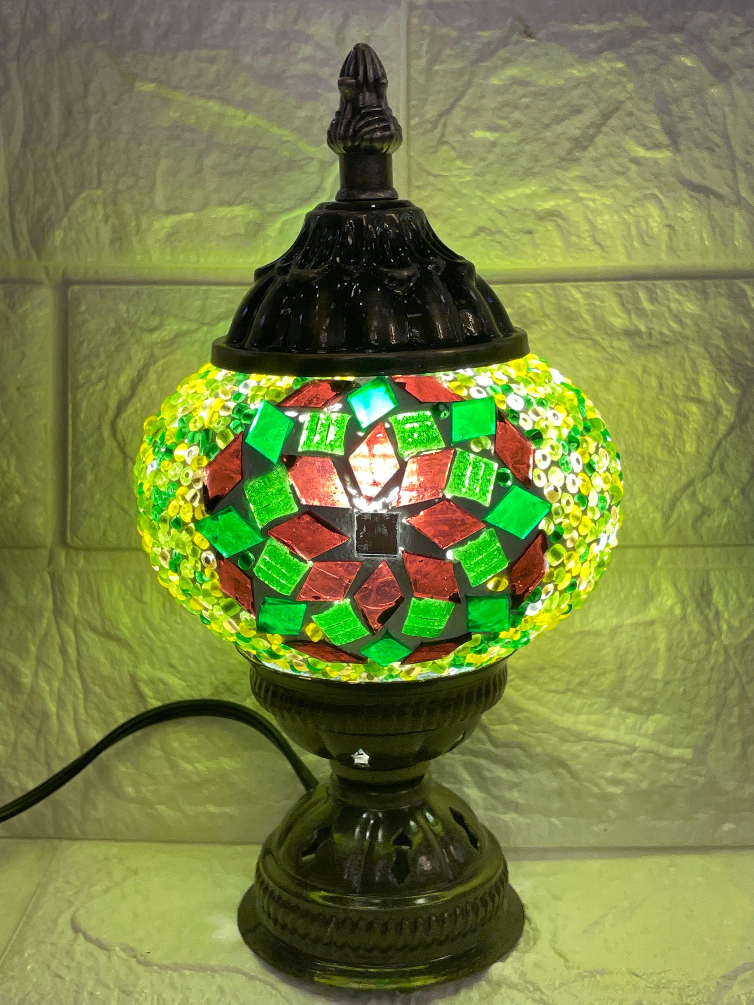 【LED電球付き】Sサイズのハンドメイドモザイクガラスのスタンドランプです。ちいさめのスタンドで好きな場所を彩れますよ。