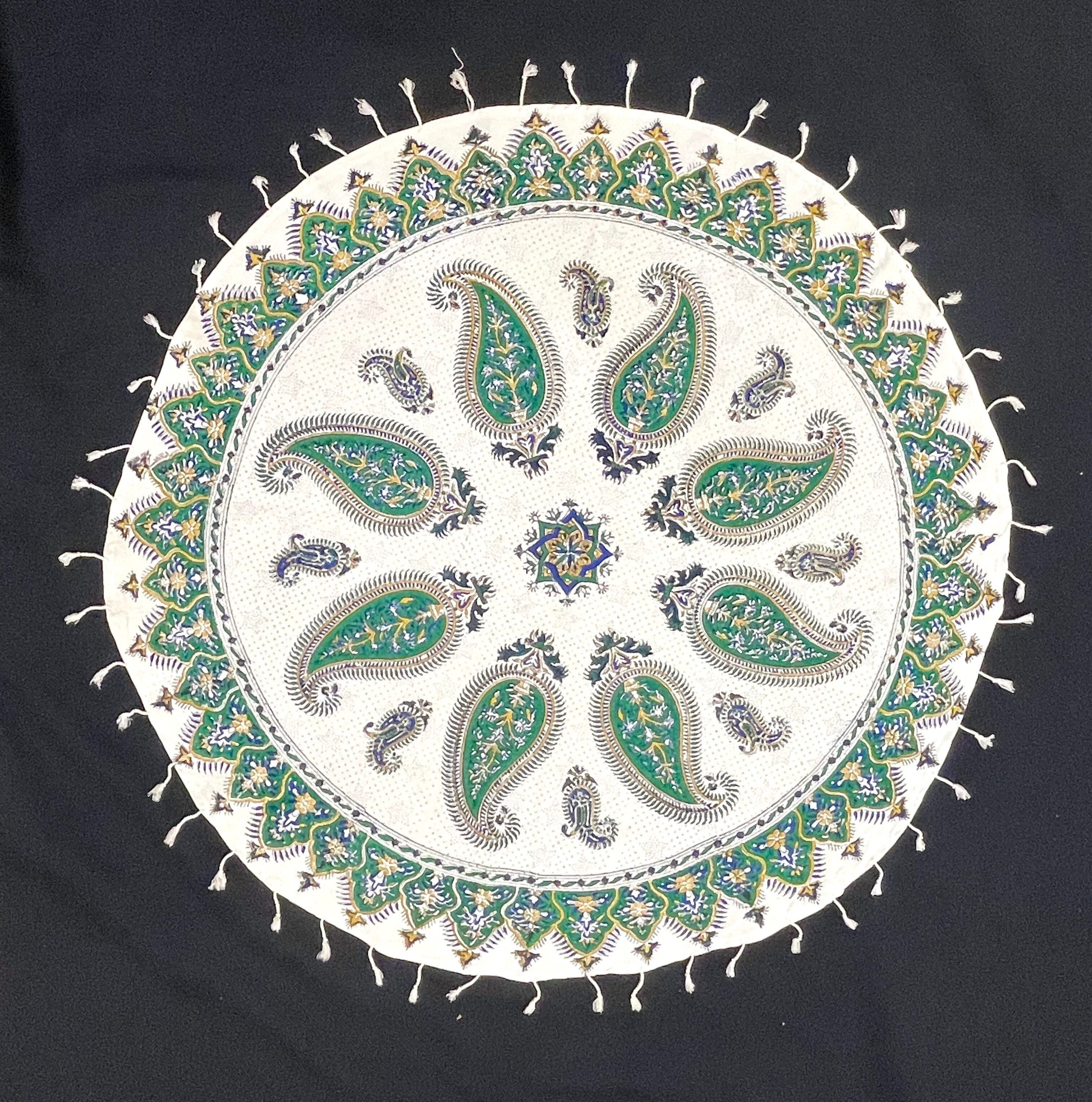 さらさ【円形100cm】天然素材布 グリーン