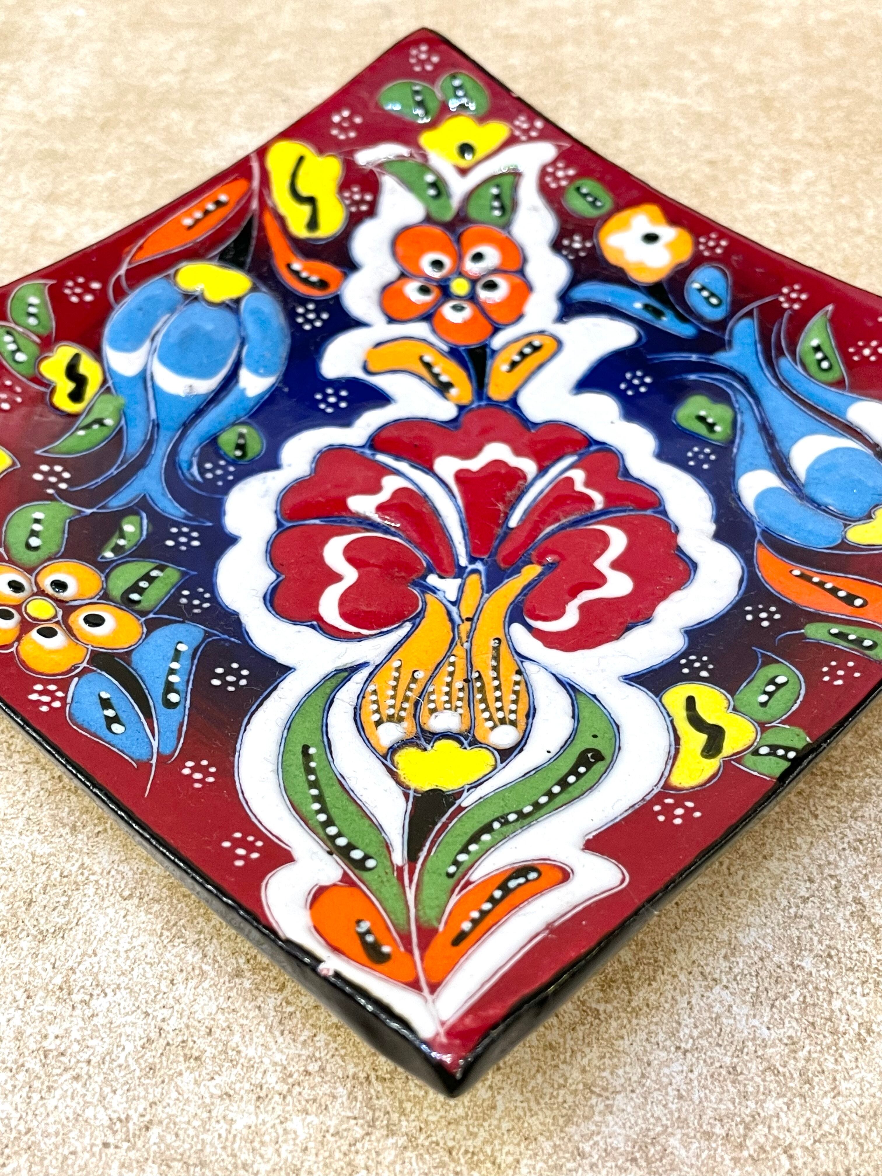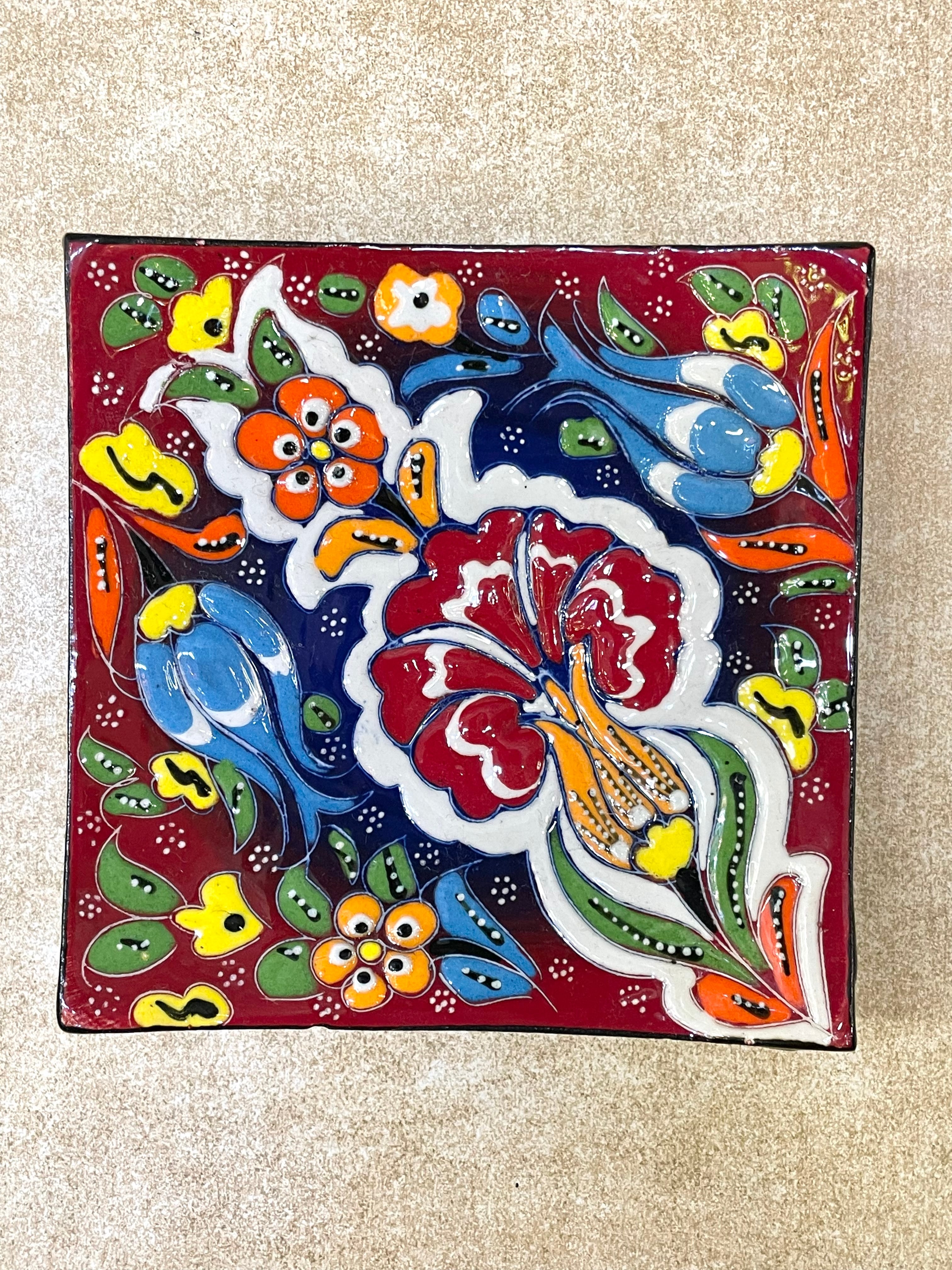 陶器の平皿 スクエア レッド