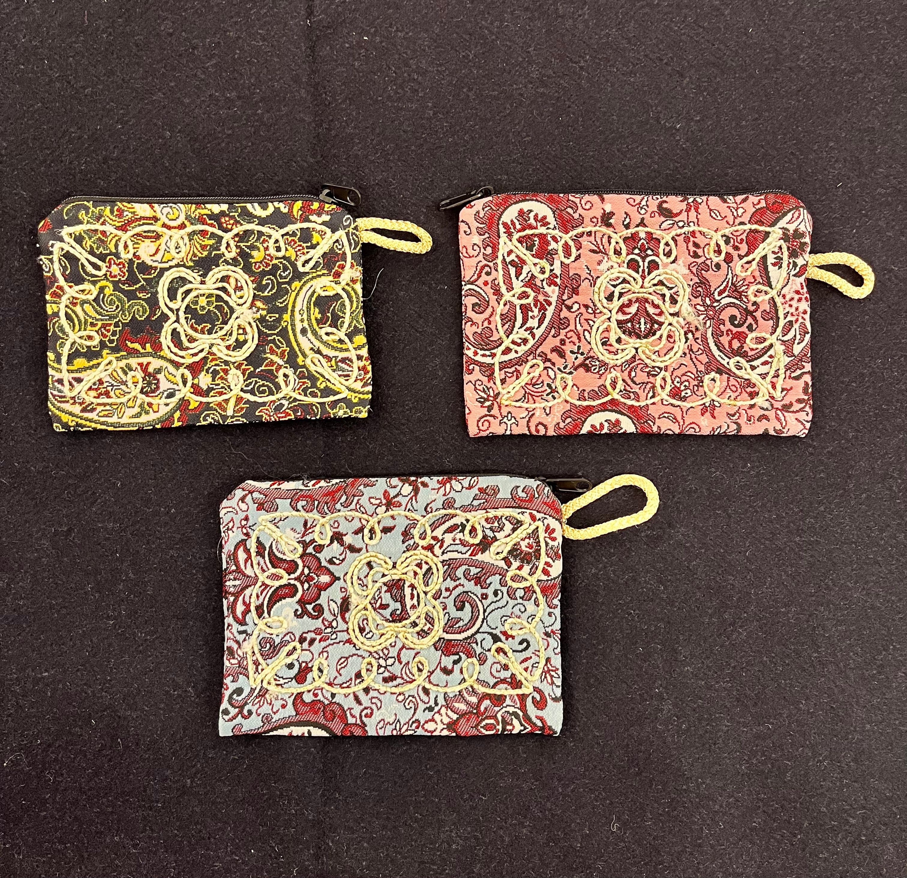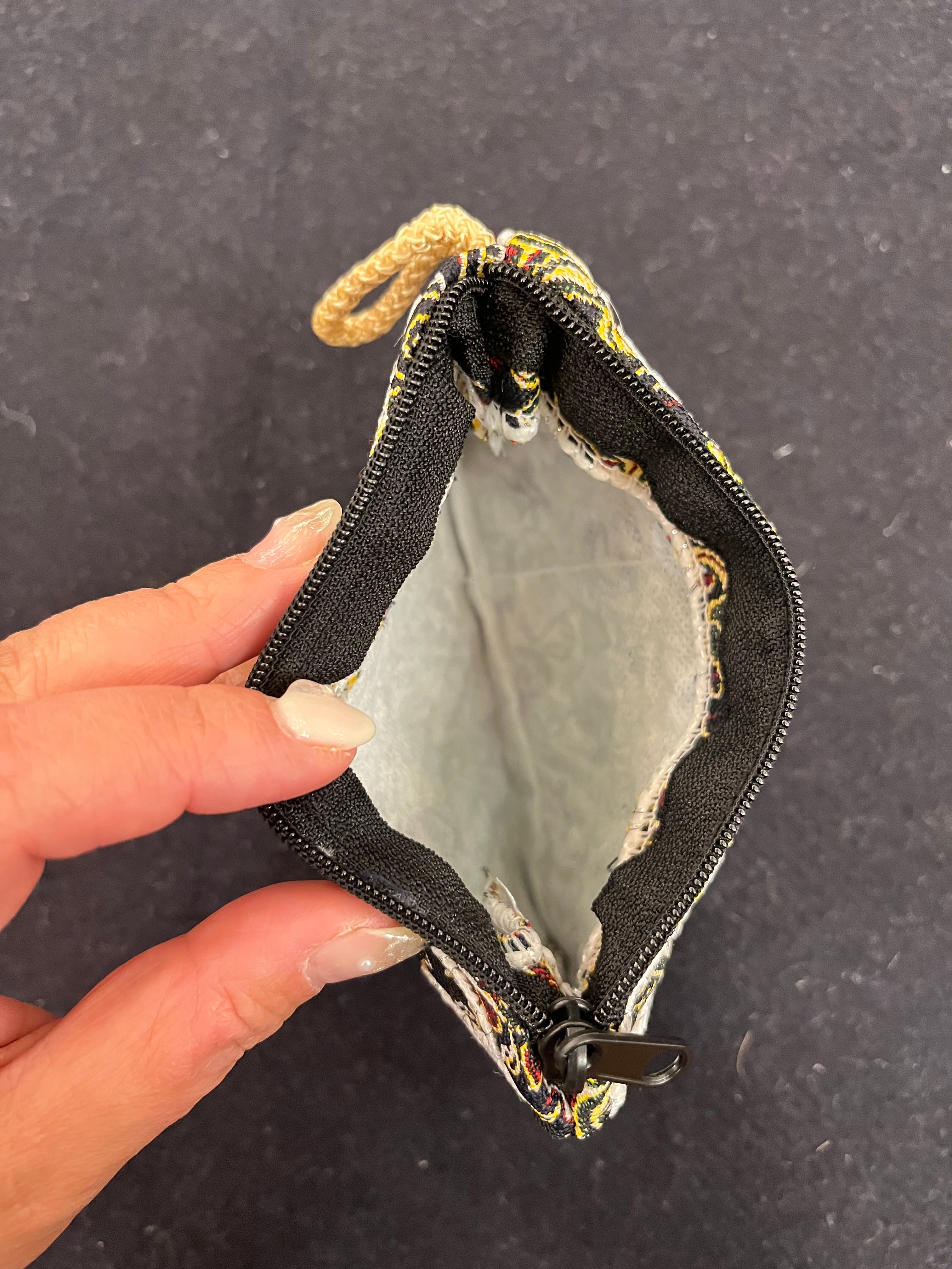 砂漠の街のテルメを使ってポーチを作りました。可愛い装飾が施してあります。