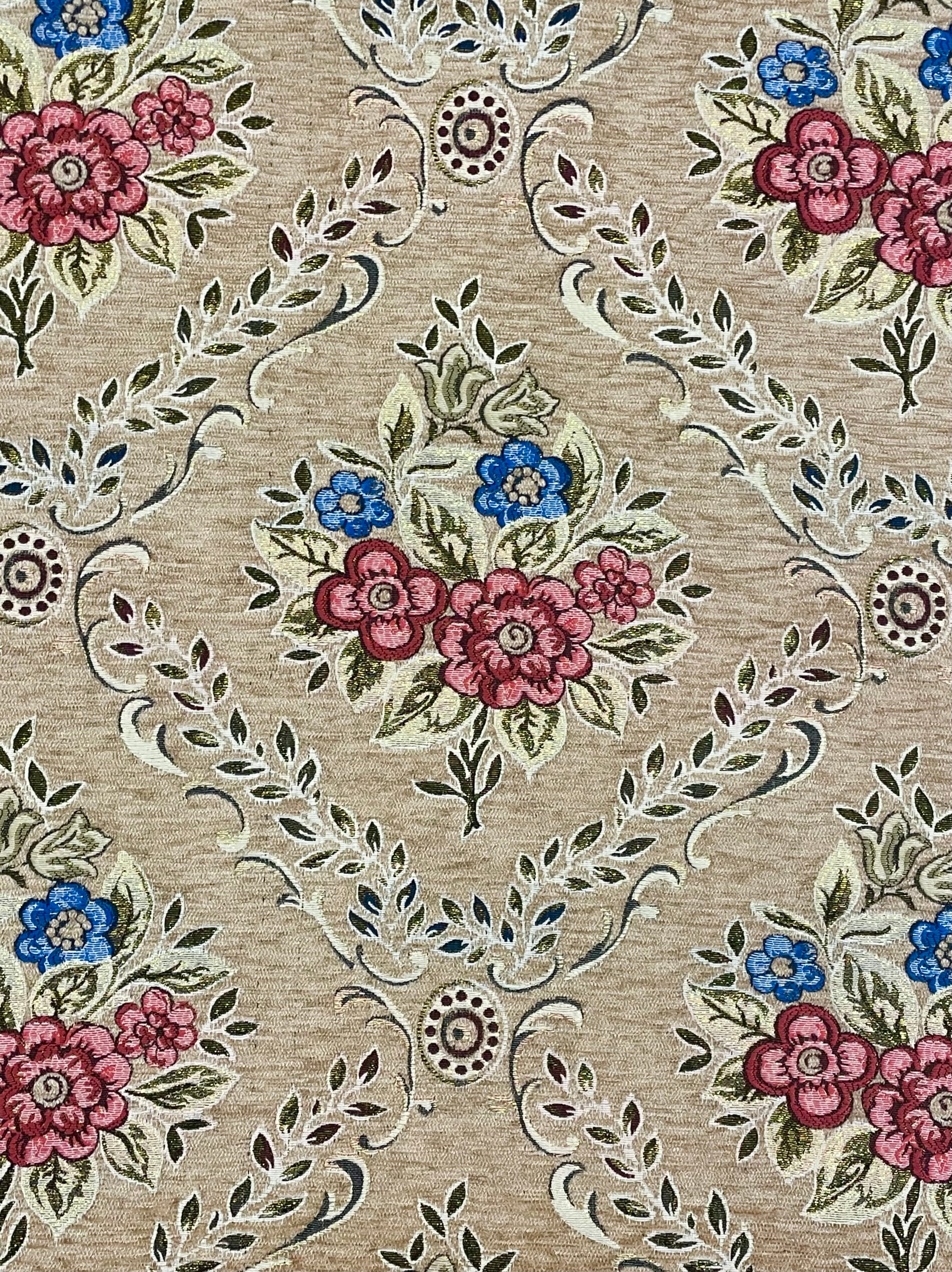 【中東のシェニール生地 】アラベスク 花柄②ベージュ