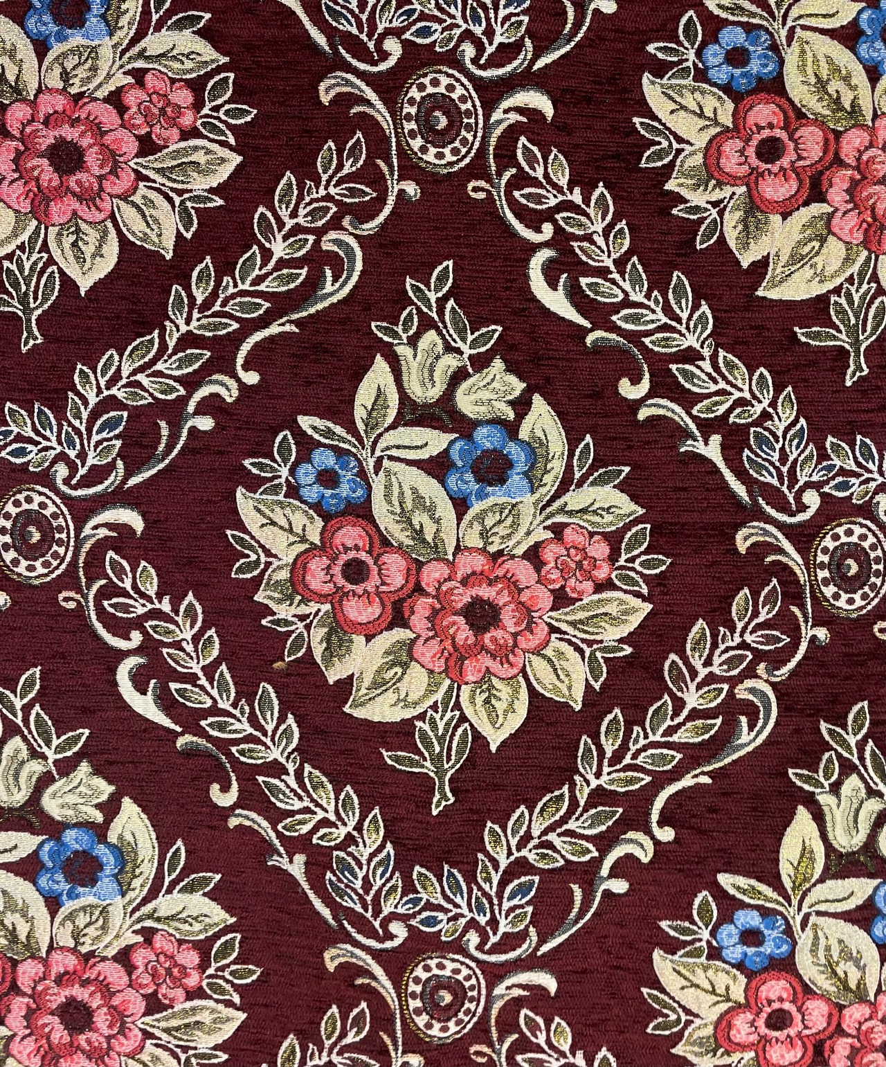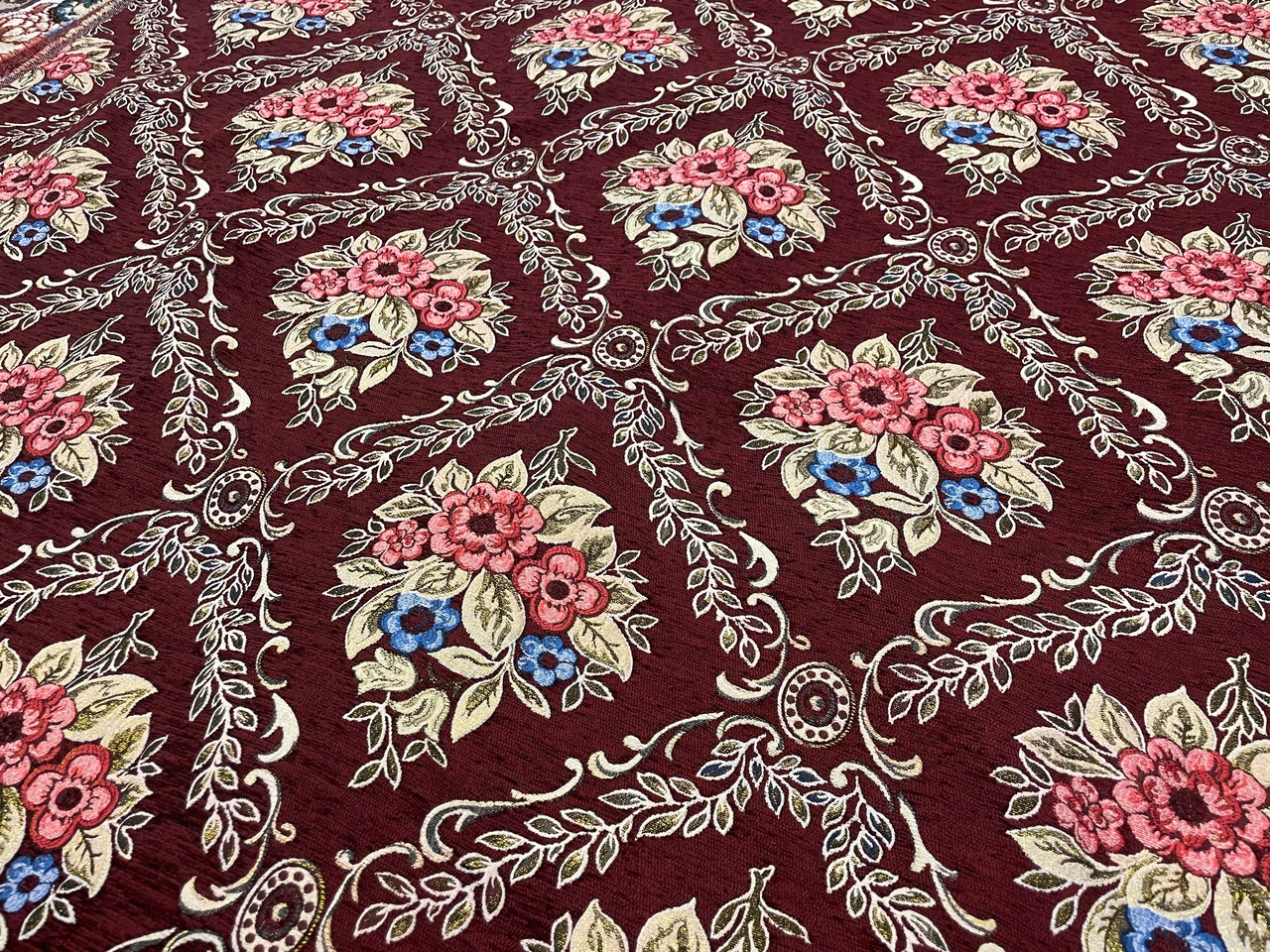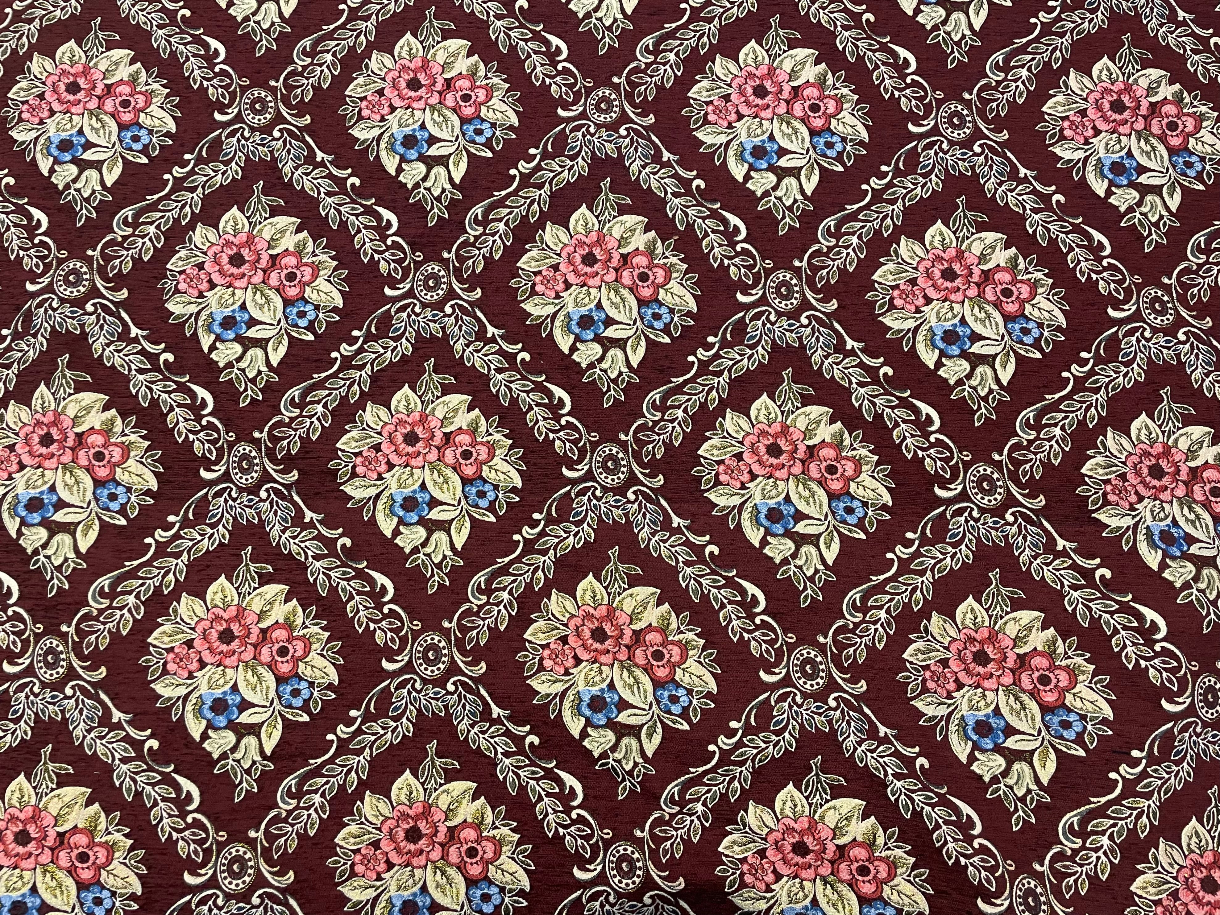 【中東のシェニール生地 】アラベスク 花柄②ワインレッド
